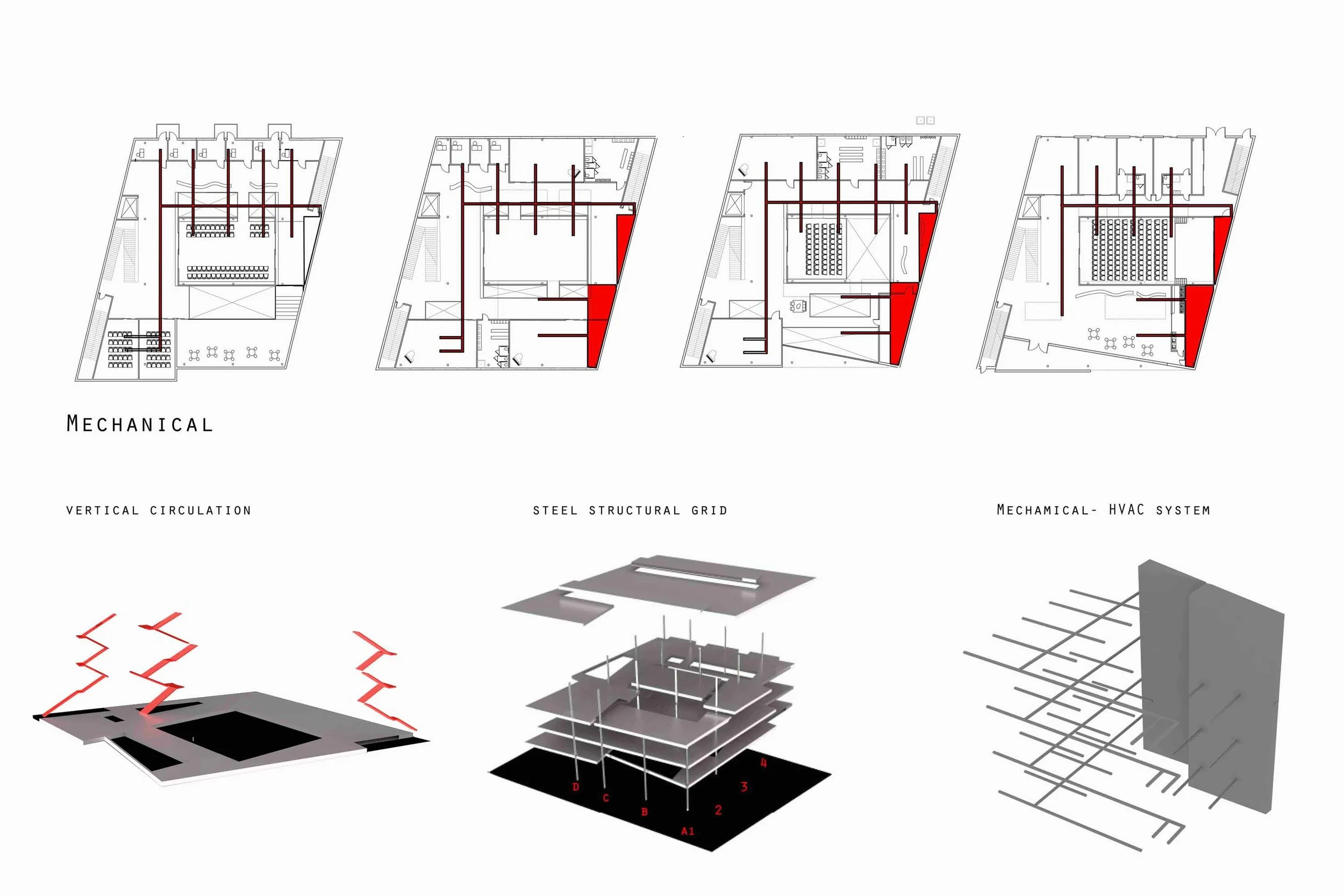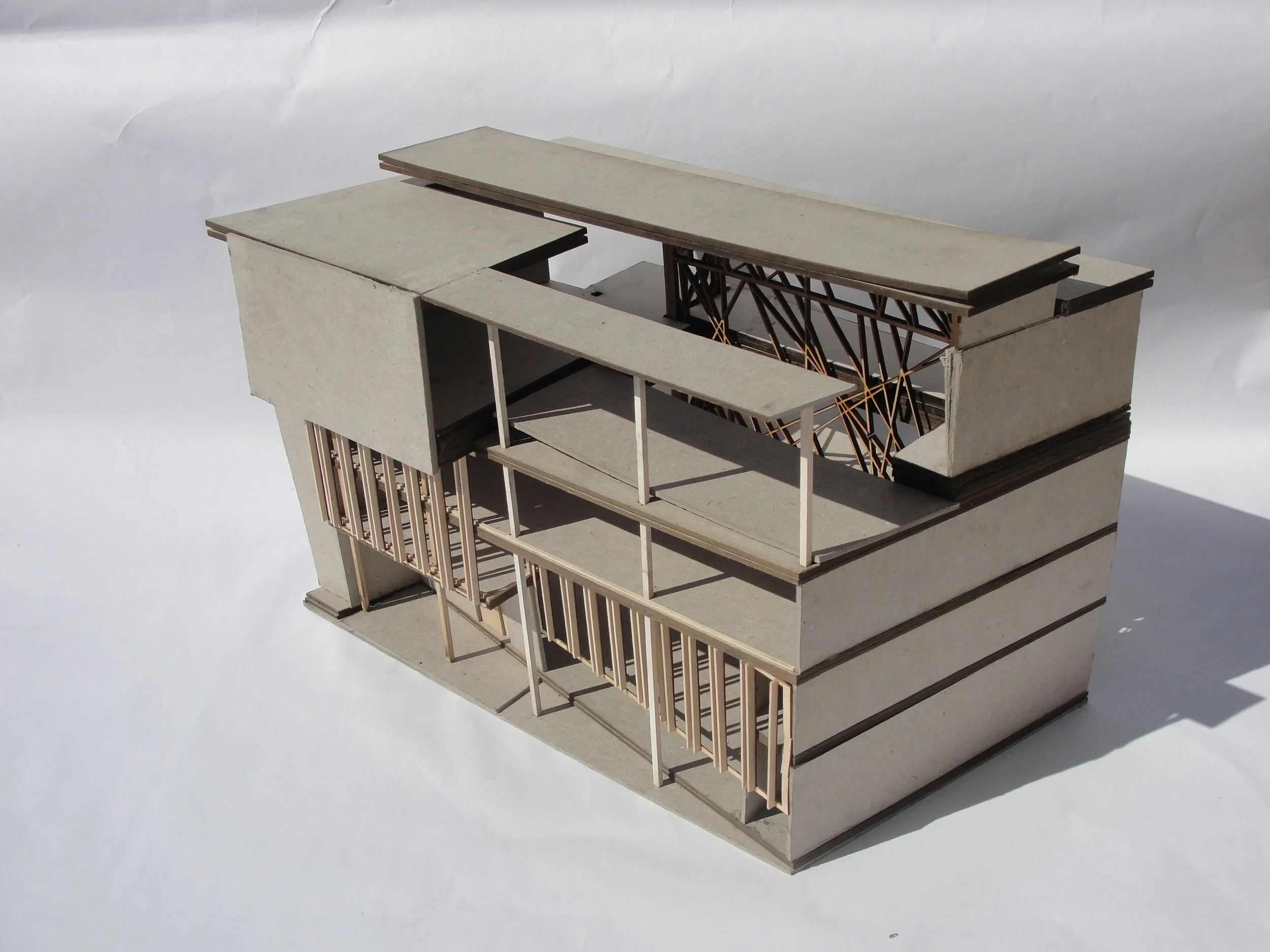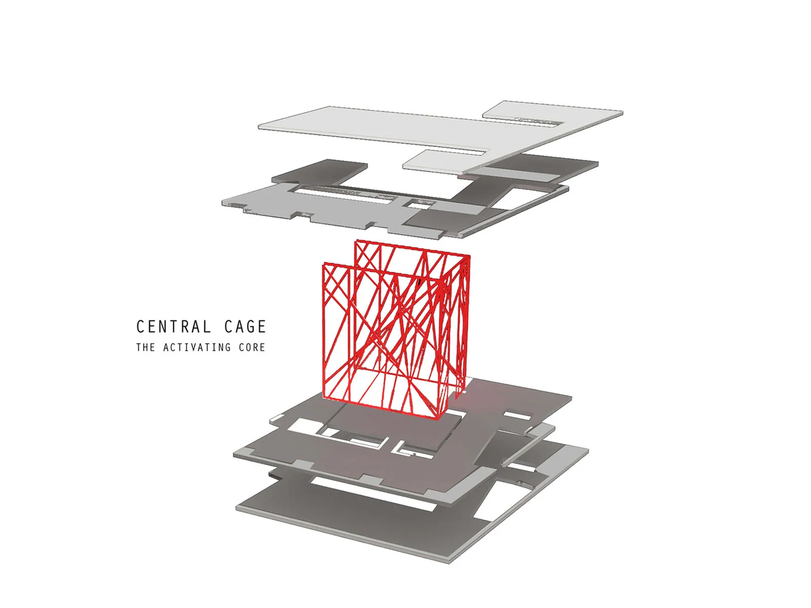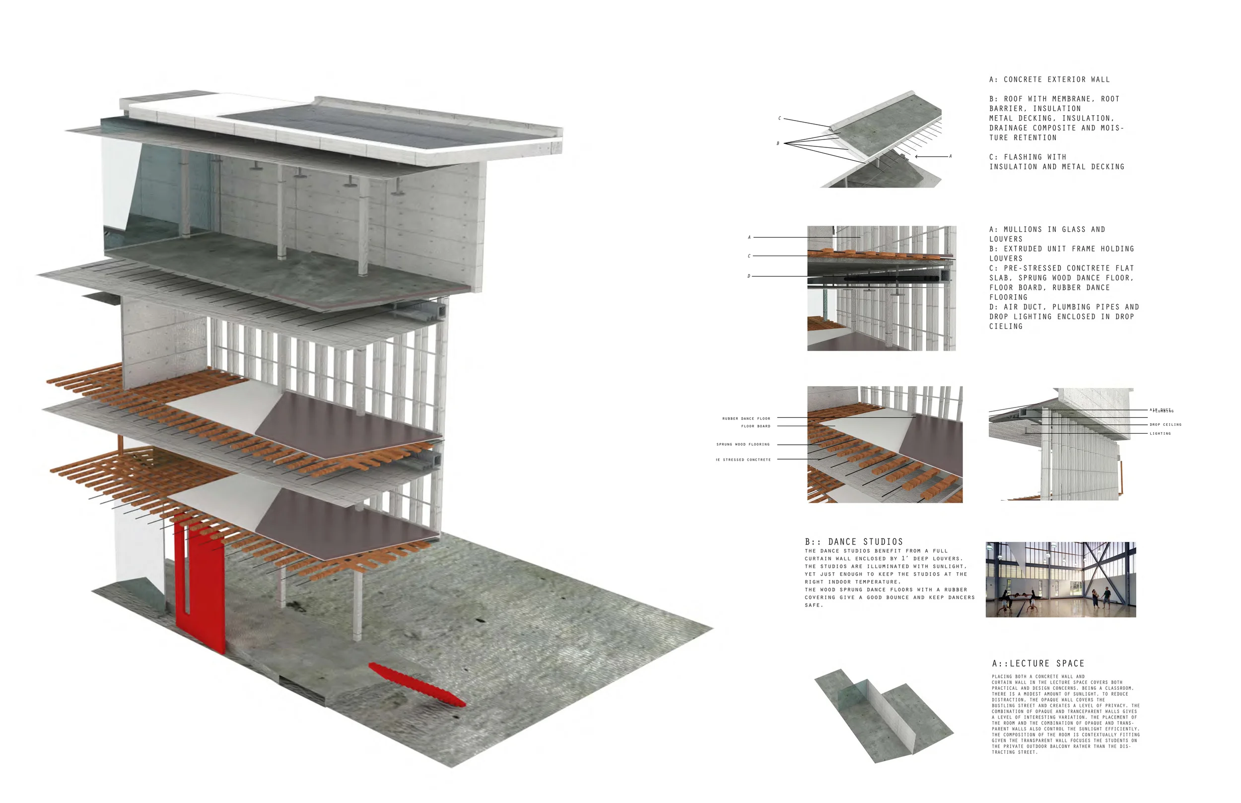 In the Warehouse District of New Orleans, Tanzakadmie holds a space devoted to the art of dance. A public theater, venue space, costume archive, and blackbox theater all sit within the concrete cage-like walls that are centrally located within the building. They command the activity, program and aesthetic of the rooms that surround them.